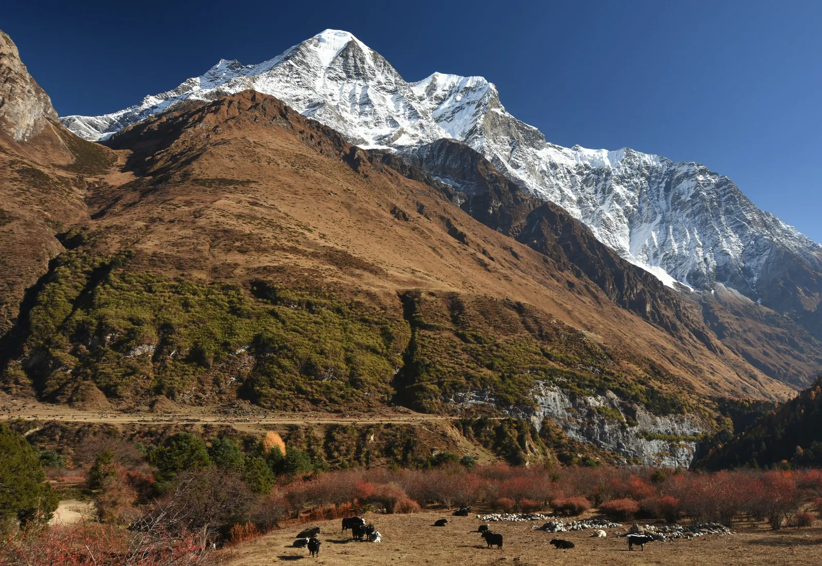 Starting from the humid lowlands, the trail follows the thundering Budi Gandaki River upstream, passing through narrow gorges and lush forests. As you ascend, the landscape transforms into an alpine wonderland of glaciers and snow-capped peaks. The journey takes you through culturally Tibetan villages like Samagaon and Samdo, where ancient traditions remain untouched by modernity. The highlight of the trek is the challenging crossing of the Larkya La Pass (5,160m), stunning unparalleled views of Himlung Himal, Cheo Himal, and the massive Annapurna II.